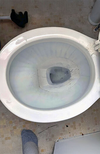 Restoration of proper flushing pressure by fixing toilets that drain slowly due to partial clogs in the trap or sewer junction, preventing future problems.